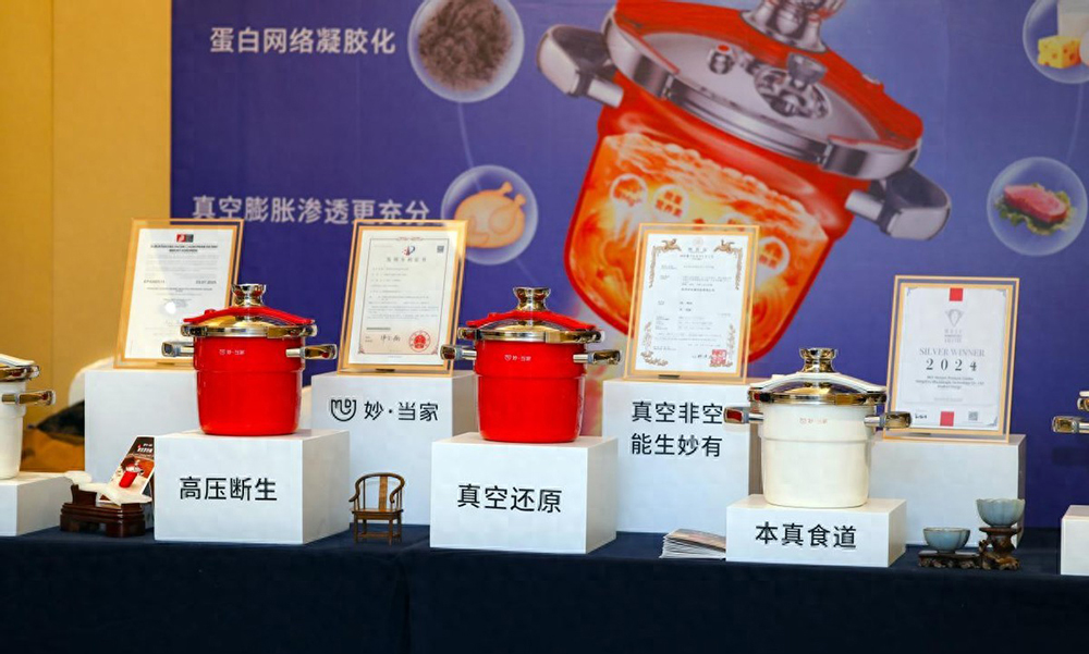 妙当家真空烹饪锅加热结束关火后,锅内自动进入真空烹饪状态,还会持续低温沸腾闷煮,此时食材会发生一系列的变化,首先是食材会在真空环境下膨胀,食材与汤汁交换融合更加充分,食材中的鲜味物质、芳香物质及矿物质及其他微量营养素可以析出更多,所以煲汤会大大提升汤的鲜美和清甜感。在真空烹饪过程中,食材的蛋白质会加速网络凝胶化,这一变化会提升肉的紧致度和弹性,从而增加肉质的口感上的软糯感和Q弹感。最后,真空烹饪的过程是隔绝氧气的,食材不会被氧化,色泽和营养保留更多。在真空环境“低温无火沸腾+真空膨胀+隔绝氧气保鲜”的互相作用下,食材的口感、色泽、营养保留等都更有优势。